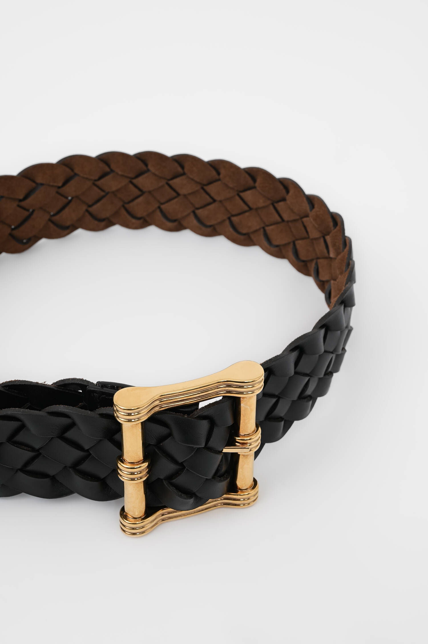 Geflochtener Ledergürtel in Cognac-Braun/Schwarz