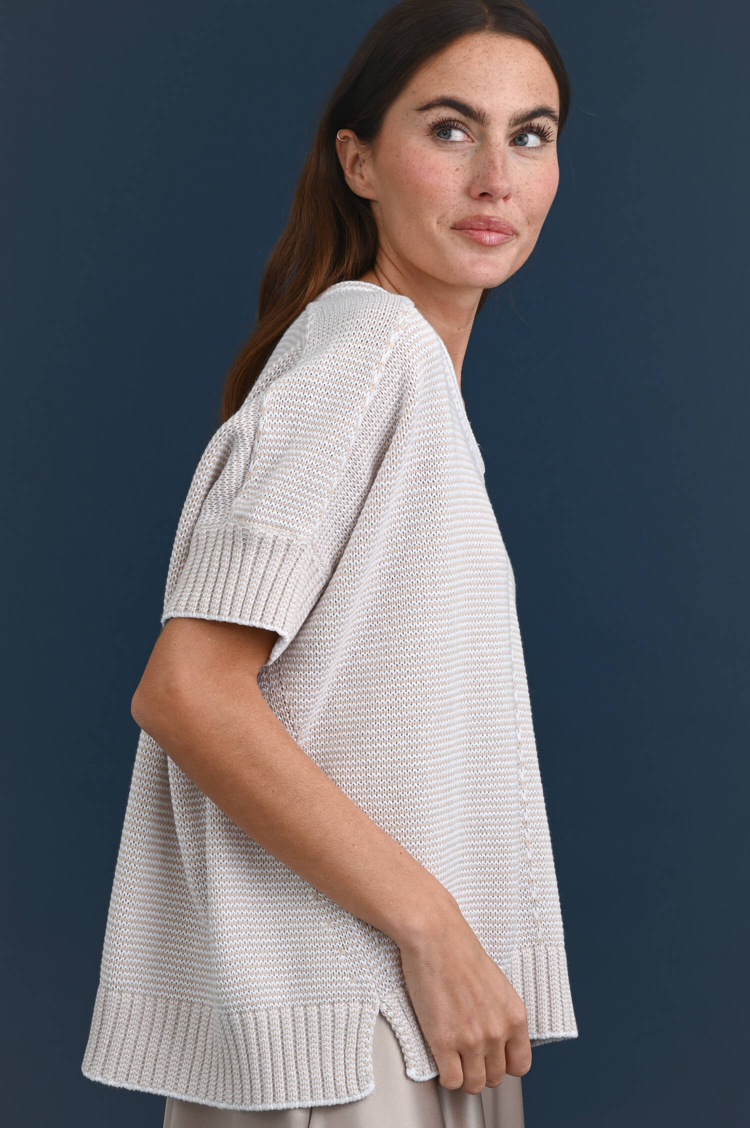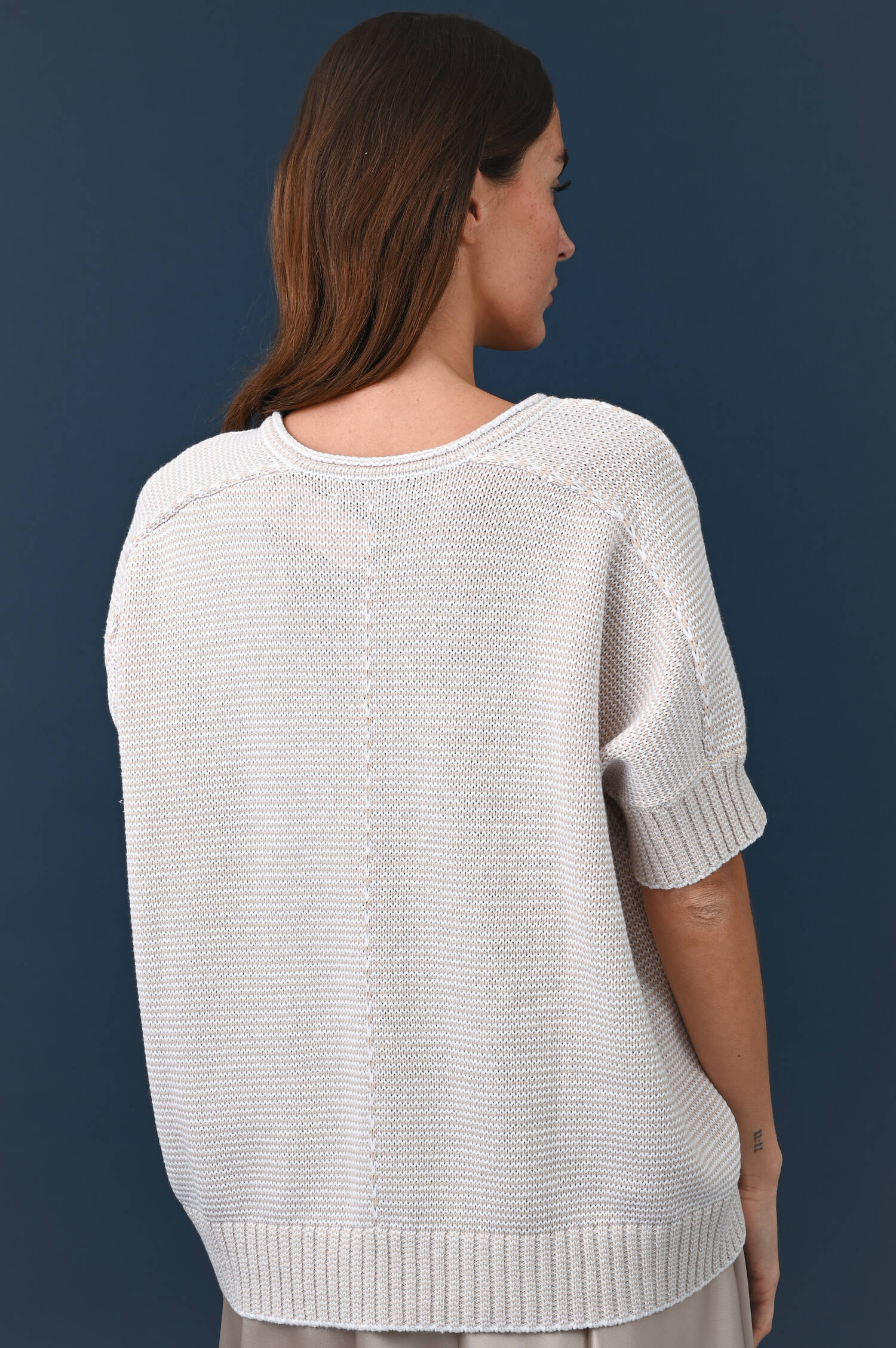 Kurzarmpullover mit Mouline Optik in Beige