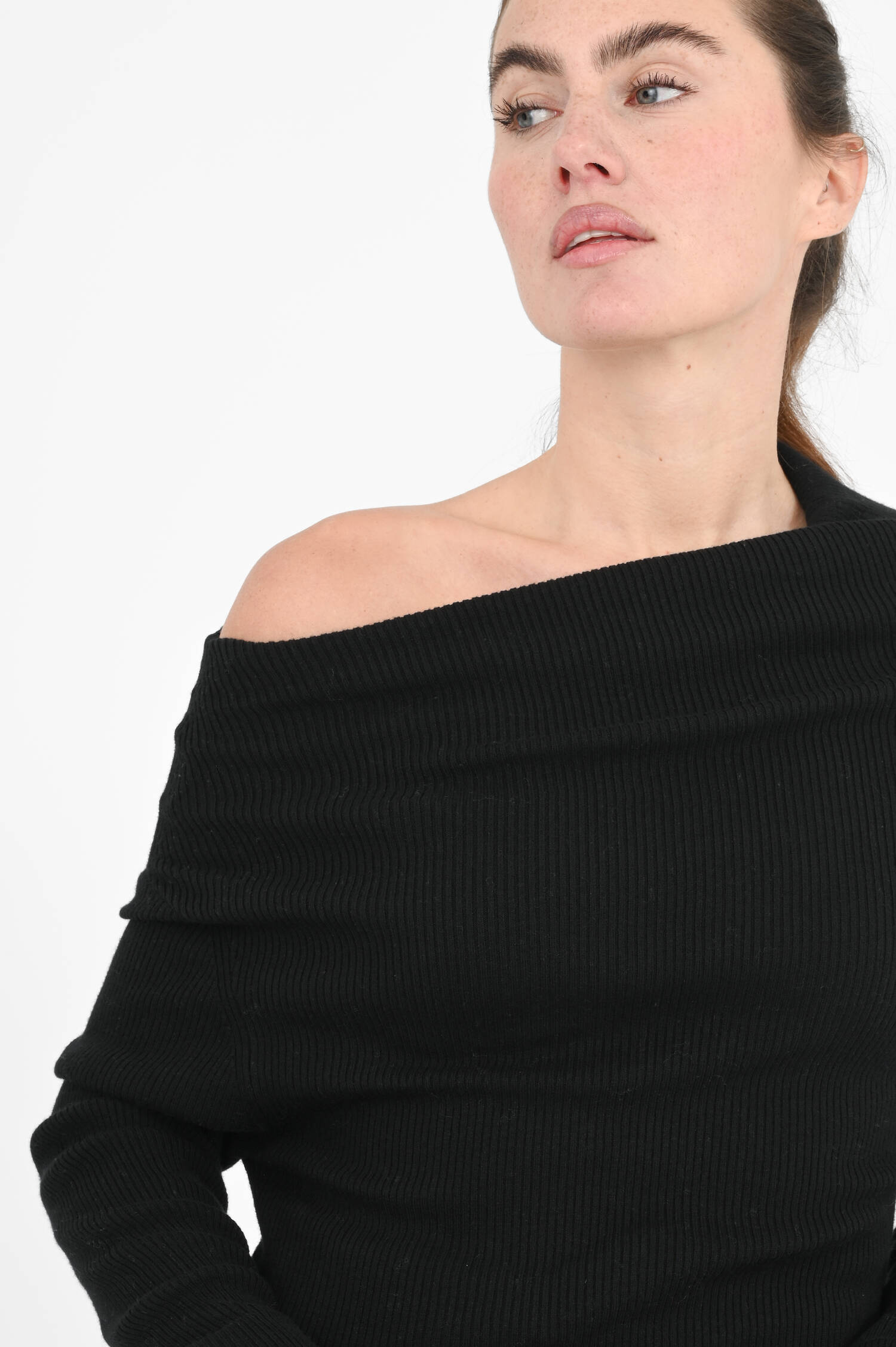 Off Schoulder Pullover in Black